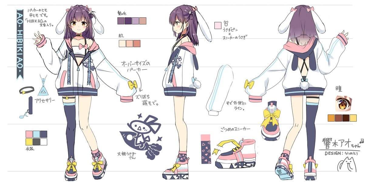 VTuberを始めるには最初に元となるキャラクターの原画が必要です。2Dか3Dかで、必要な原画の種類や素材が変動しますが、基本的には「三面図」「表情(喜怒哀楽)」「各パーツ絵」が必要です。